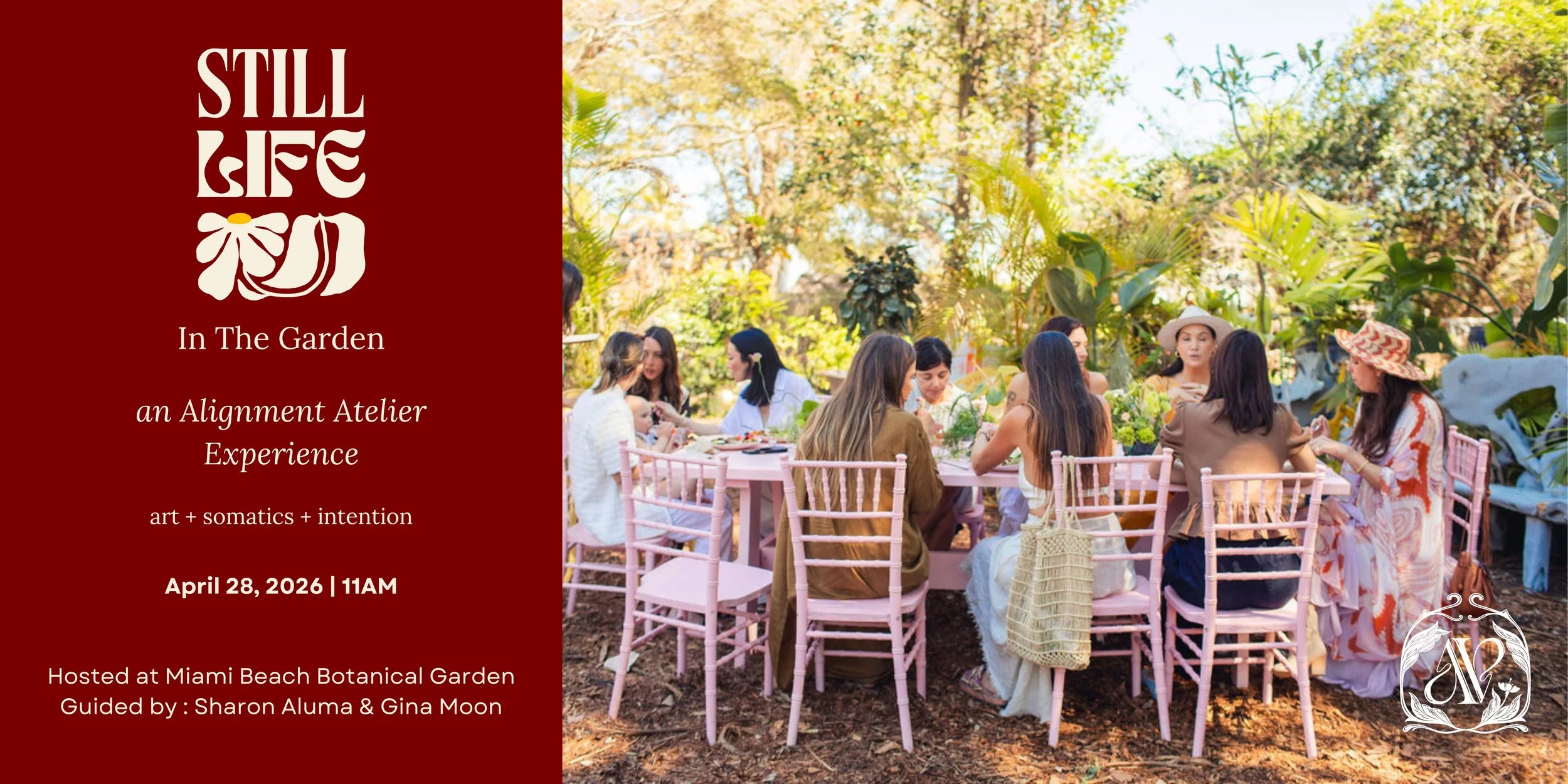 You are invited to an inspired afternoon in the garden, where art, ritual, and flowers open a field of connection. We begin with a cacao connection, then move into a guided art practice woven with breathwork and gentle somatic attunement to soften the body and awaken the senses. At a whimsical floral bar, Gina Moon guides you in working with the subtle energy of flowers.